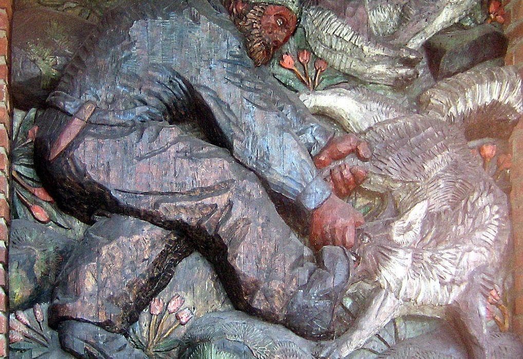 The cunning dwarves, however, eventually crafted a collar made from a cat’s footsteps, the beard of a woman, the roots of stones, the breath of a fish, and the spit of a bird (all things that don't exist). When the wolf saw the collar, he was pretty reluctant, and would only put it on if one of the gods put their sword hand in his mouth as a sign of good faith.